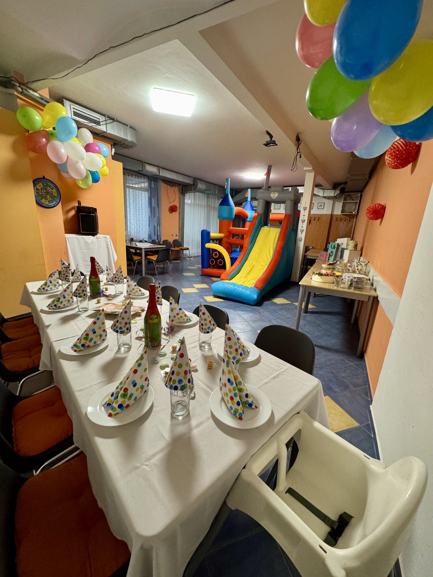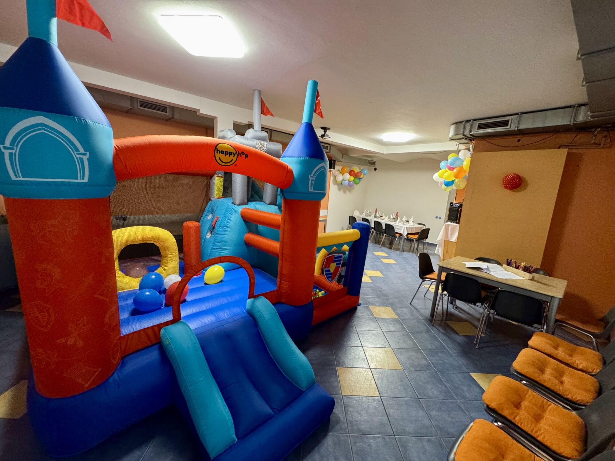 - Pronájem salónku + skákací hradChcete si prostory nazdobit samy?Není problém, prostor bude připraven pouze dle počtu osob a skákací hrad nachystán. Tzn, bez balónkové výzdoby a stolování. Po ukončení akce bude vybavebí vráceno do původního stavu, ve kterém jste jej převzali. Cena: 3000Kč PS: možnost zapůjčení nádobí či příborů dle ceníku